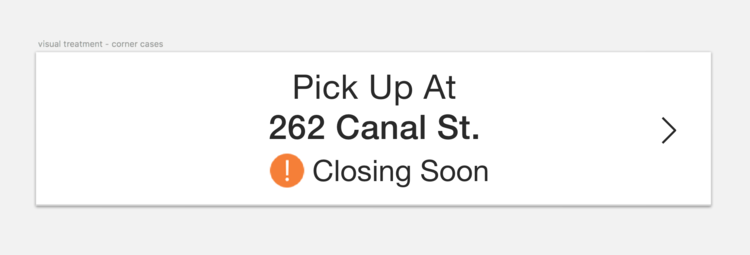 The store is closing soon: Visual treatment - Showing the "!" icon near the default store's name